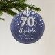 70th birthday navy blue silver stars glass tree decoration