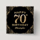 70th Birthday Party Black and Gold Glitter Frame Button. For further customisation, please click the "Customise it" button and use our design tool to modify this template.