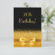 Elegant, classic, glamourous and feminine style party invitation. A gold coloured ribbon and bow. Black background. With the text: 70th Birthday! on front