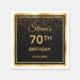 A napkin for an elegant black and gold themed 70th birthday party. Templates for a name, age and date of the party. Golden coloured letters. Black background colour and a faux gold frame. With classic swirl decor and golden confetti rain, shower. The background is transparent so you can change the colour to match your theme.