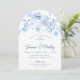 70th Birthday Party Blue Floral Arch Shape Invitation