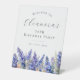 Elegant summer watercolor blue larkspur flowers create a beautiful floral border at the bottom of this birthday party welcome sign, larkspur or delphinium flowers are the July birth flower. A trendy font combination gives it a modern aesthetic. All of the text is editable.