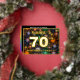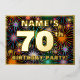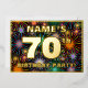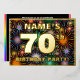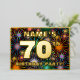 The front of this fun seventieth birthday celebration foil invitation card design features a personalised name, a large number “70th”, the message “BIRTHDAY PARTY!”, and a border. The background of the front features a joyful, colourful bursting celebratory fireworks-inspired pattern. The back features personalised details about the event, such as the date, time, venue/location, and any other relevant information. Editable invitations like these might be a fun way to invite attendees to a birthday party/gathering being held in celebration of somebody’s 70th birthday. [~Z0000602]