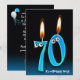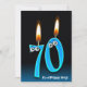 Aqua and blue gradient background with eyeballs on candles for 70th Birthday party invitation.