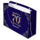 70th Birthday Party Navy Blue and Gold Glitter Large Gift Bag