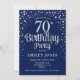 Elegant design in dark navy blue and faux glitter silver. Features stylish script font and confetti. Message me if you need custom age.