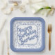70th Birthday Party Number Pattern Blue White Paper Plate