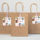 A sticker for a girly 70th birthday party, celebrating her life with a collage of 8 of your photos. Templates for a name, age 70 and a date. Date of birth or the date of the party. Coral and burgundy coloured letters. White background.