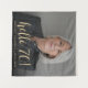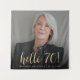 This custom 70th birthday tapestry features the guest of honour's personalised photo, name, and birthday, along with the phrase "hello 70!" in elegant gold-coloured calligraphy script. A dark screen helps make the text pop. A great way to celebrate someone who's turning seventy!