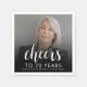 This custom 70th birthday napkin features the guest of honour's personalised photo, name, and birthday, along with the word "Cheers" in elegant white calligraphy script. A dark screen helps make the text pop. A great way to celebrate someone who's turning seventy!