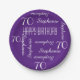 70th Birthday Party Repeating Names Classy Purple Paper Plate