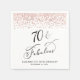 Chic 70th birthday party napkins featuring "70 & Fabulous" in a stylish script, modern typography and a rose gold faux glitter confetti overlay.