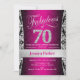 70th Birthday Party Invitation in pink black and silver.