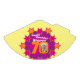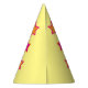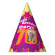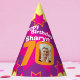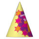 Bright star pattern add your own photo and name party hat. Ideal for a special ladies 70th birthday party celebration. Colourful pink, orange and yellow design. Background colour can also be changed for your own choice currently yellow. Original art and design by Sarah Trett. www.sarahtrett.com for www.mylittleeden.com