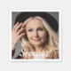 Template for own Your photo. White text overlay: Seventy!. Written with a modern hand lettered style script. A napkin for a 70th birthday party.