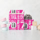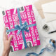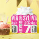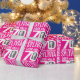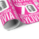 Hot pink 70th birthday personalised photo milestone birthday wrap. Personalise this birthday wrapping paper with two photographs of the birthday girl in the middle of the number 0. Great idea for adding some fun to a milestone seventieth birthday gift. Other matching items and colours are available. Exclusive design by www.mylittleeden.com