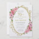 70th Birthday Pink Rose Floral Gold Invitation