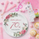 70th Birthday Pink White Elegant Floral Botanical Paper Plate
