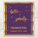 Elegant and modern for a 70th birthday party. Purple backdrop and faux gold text written with a trendy hand-lettered style script: hello seventy. With golden dots as decor. Templates for name and date, golden letters. You can change the background colour to match your theme. Click customise and then "select a background colour" on your right.