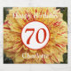 Celebrate a 70th milestone birthday milestone with personalised, self-adhesive sparkling wine bottle labels that feature the photo image of a stunning, red and yellow Dahlia flower along with the celebrant's name. Personalise your label by editing name and birthday age as desired.
