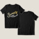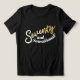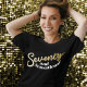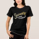 Seventy and sensational, 70th birthday gold style effect seventy script text in gold hues with white text on a black t-shirt. Personalise this 70th birthday shirt with your own message. Other years and matching items are available. © Original design by Sarah Trett for www.mylittleeden.com on Zazzle.