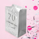 Elegant, classic, glamourous 70th birthday party. A silver metallic background. Decorated with glitter dust. Personalise and add a name. With the text: Happy Birthday. The name is written with a modern hand lettered style script. Number 70 is written with a balloon style font.