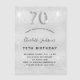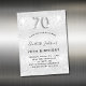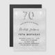 A modern, stylish and glamourous invitation magnet for a 70th birthday party. A faux silver looking background, decorated with glitter dust. Personalise and add your name nad party details. Number 70 is written with a balloon style font, script.