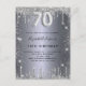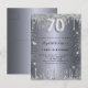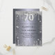 A modern, stylish and glamourous invitation for a 70th birthday party. A faux silver looking background, decorated with glitter dust. Personalise and add your name nad party details. Number 70 is written with a balloon style font, script.