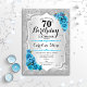 70th Birthday - Silver Stripes Blue Roses Invitation