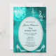 Womens' personalised, elegant custom 70th birthday party invitations with glitz and glamour. Woman's beautiful teal blue and white double sided seventieth / seventy years / 70 year old birthday invites with a funky retro disco mirror ball, glamourous printed image rhinestones / diamonds / glitter/ sequins, bling jewels sparkle high heels stilettos shoes, and glittery musical notes / music notes with sparkles on a vibrant teal turquoise blue and white lights and sparkles background. Chic, classy, cute, girly, modern invitations for a woman in trendy, fashionable colours. These groovy, stylish, sophisticated, fun, pretty invites are decorated / printed on both sides. Perfect invitations for a dinner dance / nightclub dancing event. Pearls and lace mat by ©Hazel Kinvig-Paul www.design-a-dream.co.uk. PLEASE NOTE: All invitations on Zazzle have flat printed images. If you need any assistance customising your product please contact me through my store and I will be happy to help.