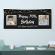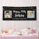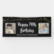 Celebrate a 70th birthday and welcome party guests with this editable black banner sign featuring two photos (perhaps THEN and NOW pictures of the birthday man or woman) with a border of gold and white string lights. EDITABLE COLOR: The black background colour and text fonts and colour can be changed to coordinate with your party colour scheme by clicking on the CUSTOMIZE tab.