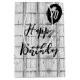 A symmetrical pattern features vertical and horizontal wooden panels with a worn, rustic appearance, showcasing a faded white finish with black balloon for a 70th birthday.