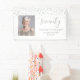 Help her celebrate her 70th birthday in style with this simple but elegant banner, featuring faux silver triangular confetti sifting down on her photo and the word "seventy" in silver grey handwriting font on a white background. Easily replace the sample image with a photo of your choice. Personalise the text with the name of the honoree in silver grey sans serif font, along with the occasion and date below in smaller grey type.