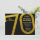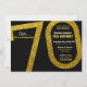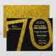 A classic chic and stylish 70th Birthday Surprise Party invitation features a black and faux gold glitter colour palette with modern typography. Easy to customise with your own text to fit your special event.