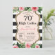 70th High Coffee Invitation for women. Black and Gold Birthday Party Invite. Gold Glitter. Pink Watercolor Floral Flower. Black and White Stripes. Printable Digital. For further customisation, please click the "Customise it" button and use our design tool to modify this template.