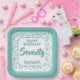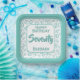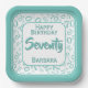 This over-the-hill design has a teal and white random number pattern with milestone number 70 repeated in varied sizes and angles.  There is a white rounded square in the centre for your text and teal and white around the rim.