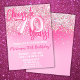 Cheers to 70 years! 70th Birthday Party Invitation Pink Glitter 70th birthday invitations for a 70 year old with modern script writing and fun foil balloons.