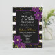 70th Surprise Birthday Party| Black and Gold Glitter Design with Purple Floral Detail . This is a template ready for you to add your party details to .
