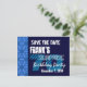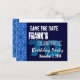70th Surprise Birthday Save the Date Blue Pattern Announcement Postcard