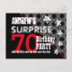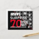 70th Surprise Birthday Save the Date Diagonal BLACK RED WHITE W71 with Grunge Stars . Here's a trendy save the date diagonal design with fun lettering for a SURPRISE birthday party. Modern and elegant! All text is totally customisable, so also suitable for a 70th, 71st, 72nd, 73rd, 74th, 75th, 76th, 77th, 78th, 79th year birthday, or any other year you need.