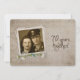 Open house invitation for 70th wedding anniversary with old-fashioned personalised photo frame and daisy bouquet and pearls.