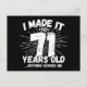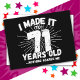 This funny 71st birthday design makes a great sarcastic humour joke or novelty gag gift for a 71 year old birthday theme or surprise 71st birthday party! Features 'I Made it to 71 Years Old...Nothing Scares Me' funny 71st birthday meme that will get lots of laughs from family, friends, party guests & the birthday guy or girl too!