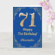 71st Birthday Blue and Gold Glitter Frame. For further customisation, please click the "Customise it" button and use our design tool to modify this template.