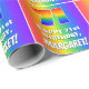 This joyful and vibrant birthday themed wrapping paper design features a large number “71” having a colourful rainbow spectrum inspired gradient pattern. It also features the message “HAPPY 71st BIRTHDAY,”, and a personalised recipient name. The background also features an exciting multicolored rainbow spectrum inspired gradient pattern. Personalised wrapping paper like this might be a fun way of wrapping a birthday present or gift being given to somebody who is celebrating their seventy first birthday. [~Z0000572]