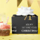 This luxurious and elegant birthday themed wrapping paper design features the message "HAPPY 71st BIRTHDAY,", an editable name, and the birthday number "71st" having a faux/imitation gold inspired look pattern. The background is coloured black. Wrapping paper like this might be used when wrapping presents/gifts that are being given in celebration of somebody’s 71st birthday. [~Z0000454]