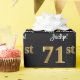 This luxurious, elegant, and stylish birthday themed wrapping paper design features a large ordinal number “71st” having an imitation/faux gold-inspired appearance, plus the birthday greeting message “Happy 71st Birthday,” and an editable recipient name in a script-style font. It also has a black-coloured background. Birthday themed wrapping paper like this might be a fun way to wrap a gift or present being given to somebody who is celebrating their 71st birthday. [~Z0000515]