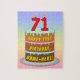 This upbeat and joyful birthday themed jigsaw puzzle design features a cartoon-style depiction of a three-tier birthday cake having number-shaped candles on top showing the age “71“, along with the message “HAPPY 71ST BIRTHDAY,”, and an editable recipient name. The background has a multicolored pastel rainbow spectrum inspired gradient pattern. A cheerful, customisable birthday puzzle like this might be a fun way to deliver a birthday greeting message to somebody who is celebrating their seventy-first birthday. [~Z0000621]