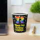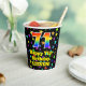 This cheerful and exciting birthday-themed paper cup design features a large number “71” having a rainbow spectrum gradient inspired pattern. It also features the message “Happy 71st Birthday,”, and a personalised name. The background features a colourful star field inspired pattern. Vibrant, colourful paper cups like this might be fun to use at a birthday party/celebration being held in celebration of somebody’s 71st birthday. [~Z0000540]