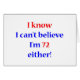 I know, I can't believe I'm 72 either! Humourous design for the 72 year old who knows they don't look 72. Makes a great 72nd birthday gift.