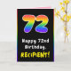 72nd Birthday: Colourful Rainbow # 72, Custom Name Card